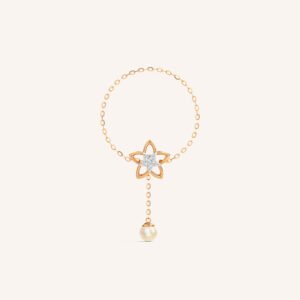 Double Crystal Pearl Ring Gold Plated Open Earring